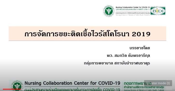 ศูนย์ประสานความร่วมมือของพยาบาลในภาวะการติดเชื้อ COVID-19 โดย กองการพยาบาล สำนักงานปลัดกระทรวงสาธารณสุข ขอเผยแพร่ VDO ชุด การจัดการขยะติดเชื้อไวรัสโคโรนา 2019 ในสถานการณ์การระบาดของโรคติดเชื้อไวรัสโคโรนา 2019