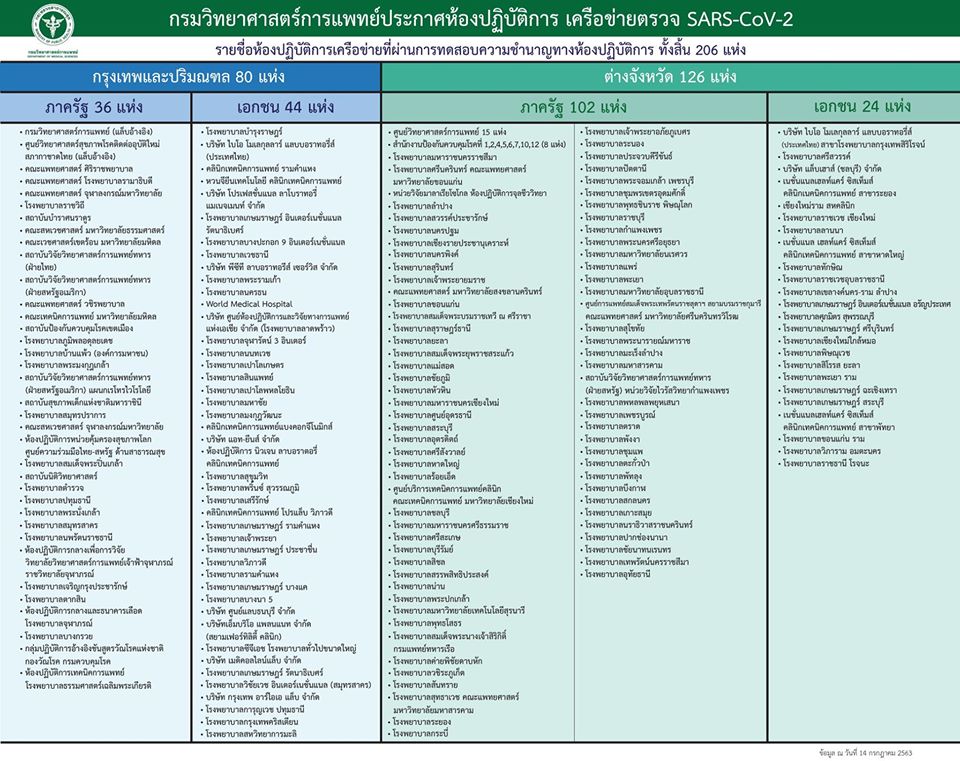 Notice: Trying to get property 'geoplugin_countryCode' of non-object in /home/thainapci/domains/thainapci.org/public_html/2021/wp-content/plugins/page-visit-counter/public/class-page-visit-counter-public.php on line 227 กรมวิทยาศาสตร์การแพทย์ ประกาศห้องปฏิบัติการเครือข่ายตรวจ SAR-CoV-2 (ข้อมูล ณ วันที่ 14 กรกฎาคม 2563) ดูรูปใหญ่ได้ที่ >>https://bit.ly/305JgfL – สมาคมพยาบาลด้านการป้องกันและควบคุมโรคติดเชื้อ(สพปร.)
