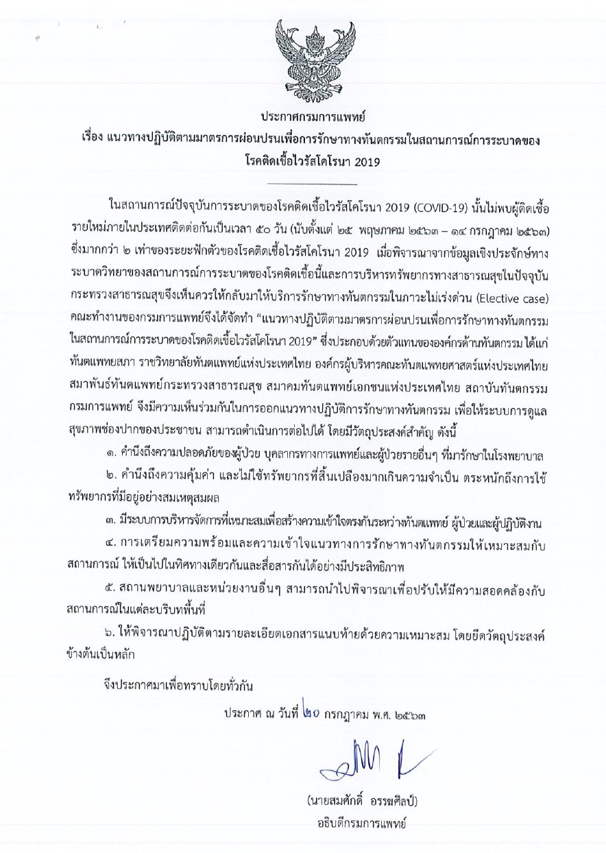Notice: Trying to get property 'geoplugin_countryCode' of non-object in /home/thainapci/domains/thainapci.org/public_html/2021/wp-content/plugins/page-visit-counter/public/class-page-visit-counter-public.php on line 227 เอกสารดาวน์โหลด (PDF) แนวทางการปฏิบัติตามมาตรการผ่อนปรนเพื่อการรักษาทางทันตกรรมในสถานการณ์การระบาดของโรคติดเชื้อโคโรนา 2019 – สมาคมพยาบาลด้านการป้องกันและควบคุมโรคติดเชื้อ(สพปร.)