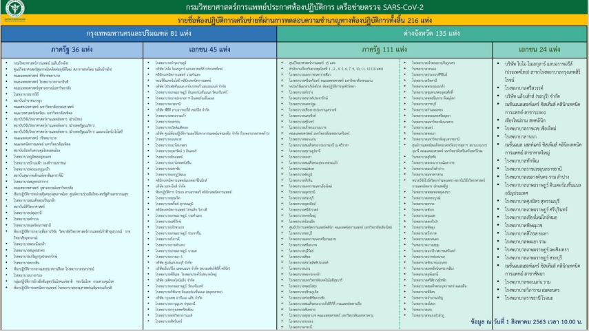 Notice: Trying to get property 'geoplugin_countryCode' of non-object in /home/thainapci/domains/thainapci.org/public_html/2021/wp-content/plugins/page-visit-counter/public/class-page-visit-counter-public.php on line 227 กรมวิทยาศาสตร์การแพทย์ ประกาศห้องปฏิบัติการเครือข่ายตรวจ SAR-CoV-2 (ข้อมูล ณ วันที่ 1 สิงหาคม 2563) – สมาคมพยาบาลด้านการป้องกันและควบคุมโรคติดเชื้อ(สพปร.)