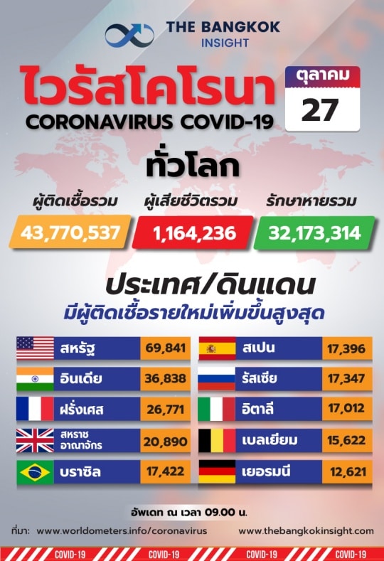 Notice: Trying to get property 'geoplugin_countryCode' of non-object in /home/thainapci/domains/thainapci.org/public_html/2021/wp-content/plugins/page-visit-counter/public/class-page-visit-counter-public.php on line 227 โควิดวันนี้ 27 ต.ค. ทั่วโลกติดเชื้อ 43.7 ล้าน ‘WHO’ มั่นใจ ยุโรปคุมระบาดรอบใหม่ได้ #THE BANGKOK INSIGHT – สมาคมพยาบาลด้านการป้องกันและควบคุมโรคติดเชื้อ(สพปร.)