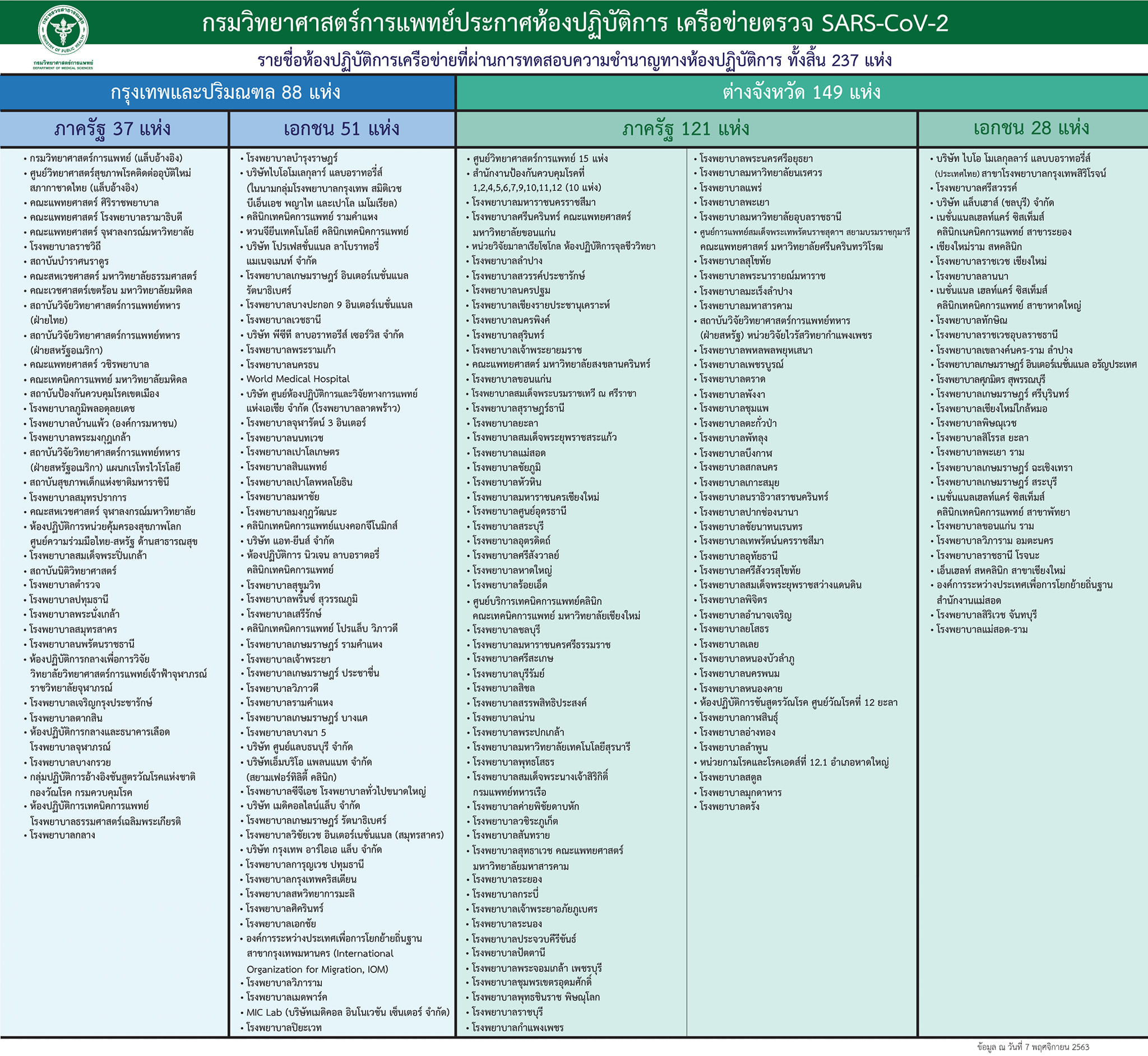 Notice: Trying to get property 'geoplugin_countryCode' of non-object in /home/thainapci/domains/thainapci.org/public_html/2021/wp-content/plugins/page-visit-counter/public/class-page-visit-counter-public.php on line 227 กรมวิทยาศาสตร์การแพทย์ ประกาศห้องปฏิบัติการเครือข่ายตรวจ SAR-CoV-2 (ข้อมูล ณ วันที่ 9 พฤศจิกายน 2563) ดูรูปใหญ่ ได้ที่ >>https://bit.ly/32HQ3P9 – สมาคมพยาบาลด้านการป้องกันและควบคุมโรคติดเชื้อ(สพปร.)