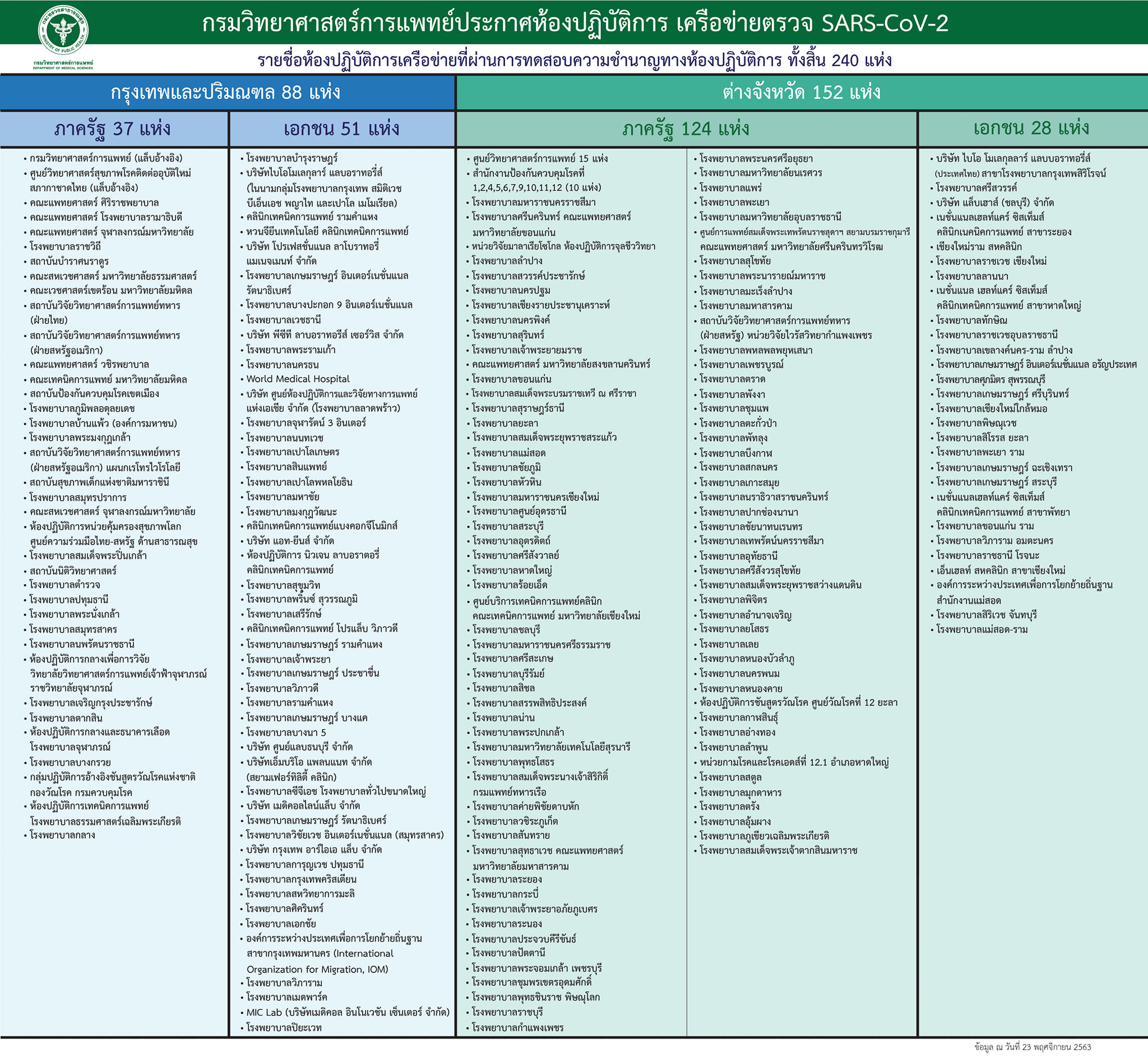 Notice: Trying to get property 'geoplugin_countryCode' of non-object in /home/thainapci/domains/thainapci.org/public_html/2021/wp-content/plugins/page-visit-counter/public/class-page-visit-counter-public.php on line 227 กรมวิทยาศาสตร์การแพทย์ ประกาศห้องปฏิบัติการเครือข่ายตรวจ SAR-CoV-2 (ข้อมูล ณ วันที่ 23 พฤศจิกายน 2563) ดูรูปใหญ่ ได้ที่ >>https://bit.ly/33b1cIf – สมาคมพยาบาลด้านการป้องกันและควบคุมโรคติดเชื้อ(สพปร.)