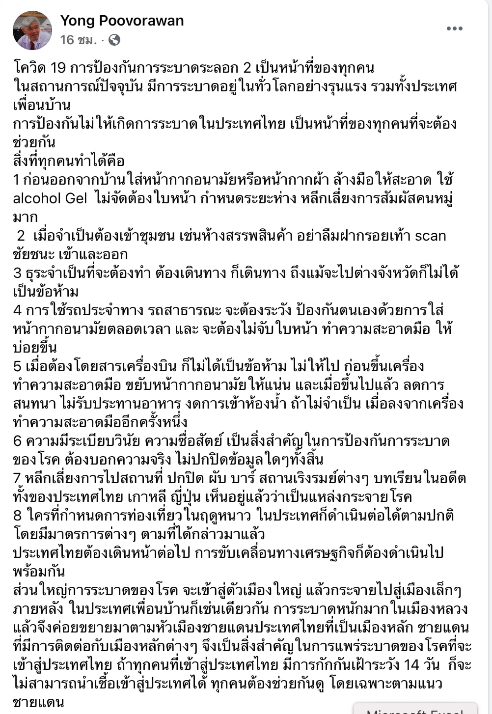 การป้องกันไม่ให้เกิดการระบาดในประเทศไทย เป็นหน้าที่ของทุกคนที่จะต้องช่วยกัน