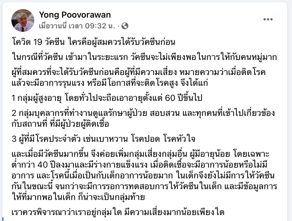 โควิด 19 วัคซีน ใครคือผู้สมควรได้รับวัคซีนก่อน