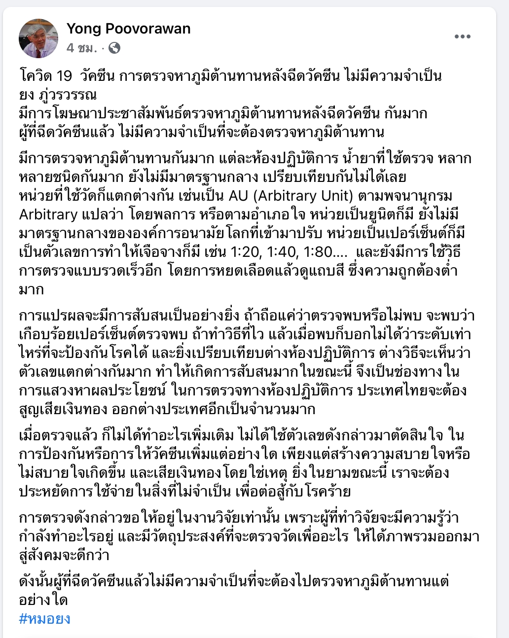 มีการโฆษณาประชาสัมพันธ์ตรวจหาภูมิต้านทานหลังฉีดวัคซีน กันมาก