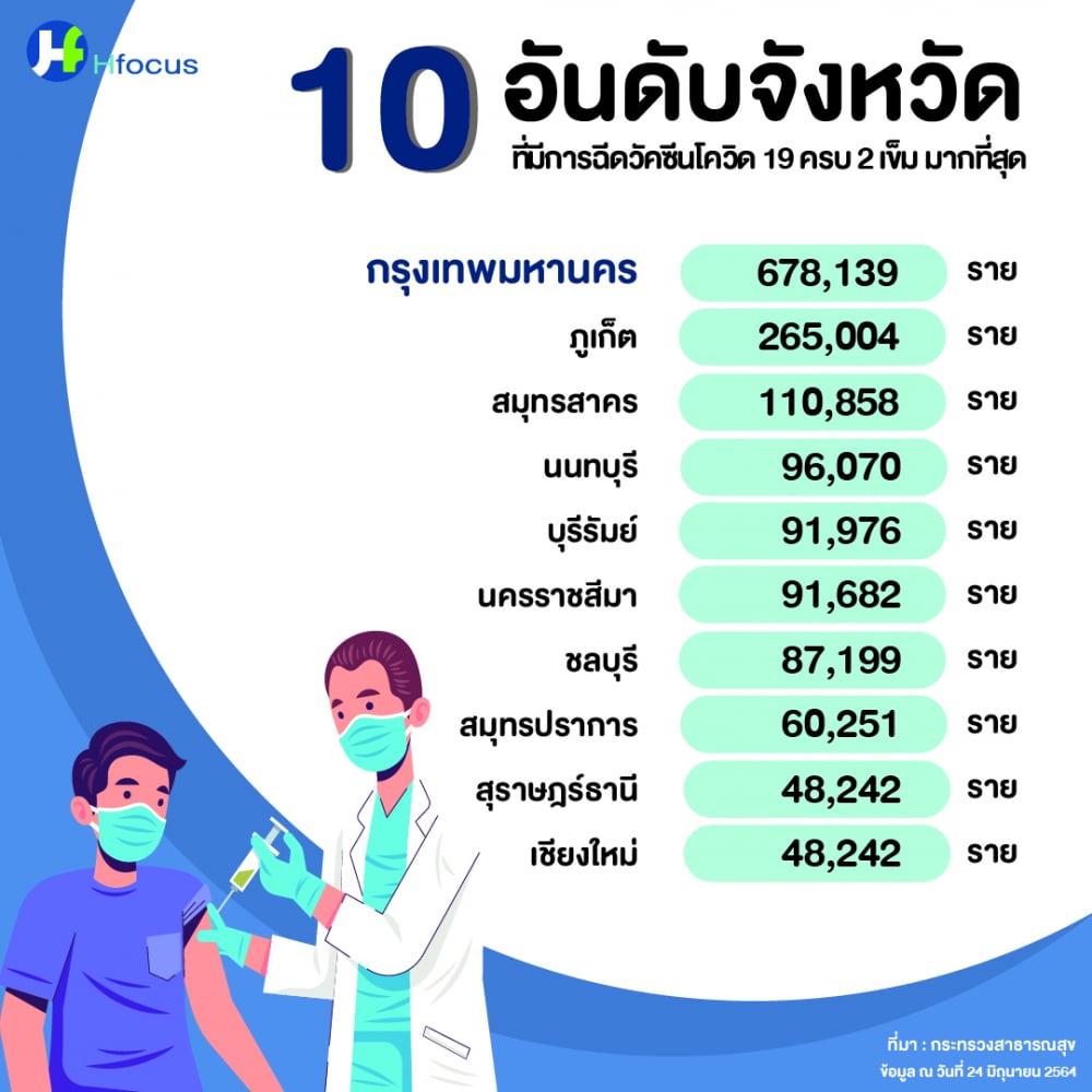 Notice: Trying to get property 'geoplugin_countryCode' of non-object in /home/thainapci/domains/thainapci.org/public_html/2021/wp-content/plugins/page-visit-counter/public/class-page-visit-counter-public.php on line 227 10 อันดับจังหวัด ที่มีการฉีดวัคซีนโควิด 19 ครบ 2 เข็ม มากที่สุด #Hfocus – สมาคมพยาบาลด้านการป้องกันและควบคุมโรคติดเชื้อ(สพปร.)